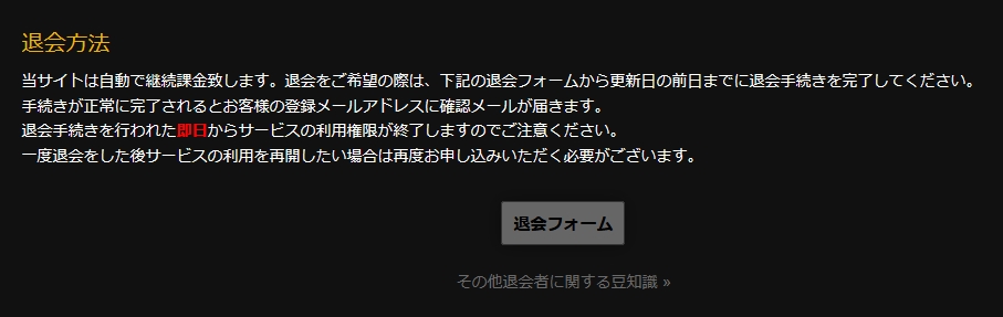 注意点としては、メンバーシップ更新日の前日までに退会の手続きが必要です(要ログイン)。