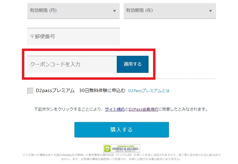 3.入会フォームの下のほうに「クーポンコードを入力」欄があります。